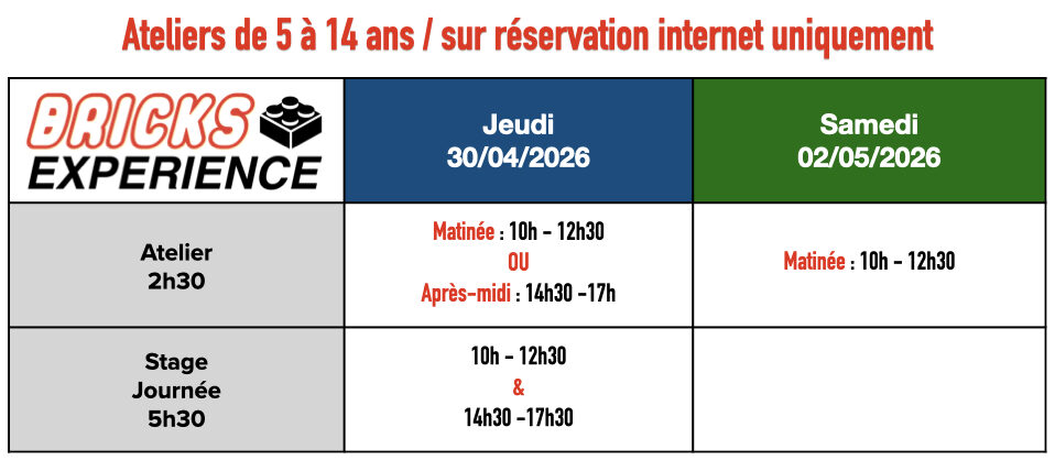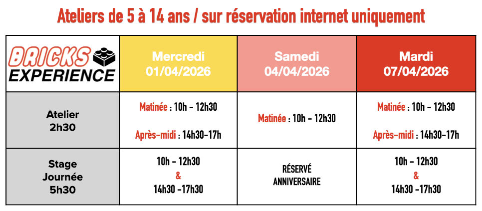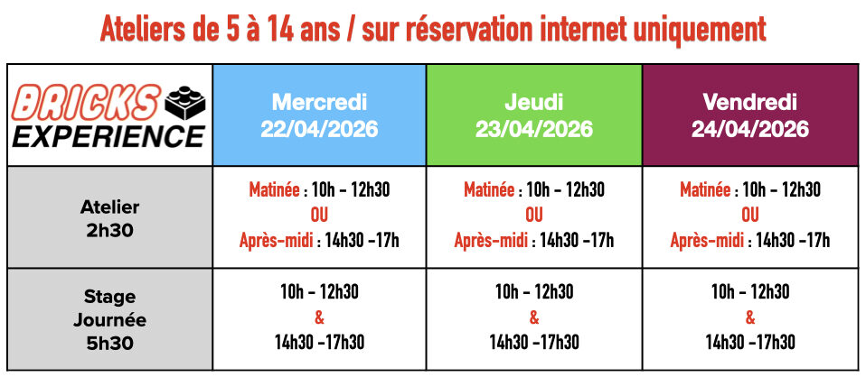 Au programme : des ateliers créatifs, des défis de construction excitants, des jeux surprenants et des activités ludiques pour émerveiller les enfants de tous âges.Chaque enfant pourra exprimer sa créativité, relever des défis en équipe et développer son imagination dans une ambiance fun et interactive.
